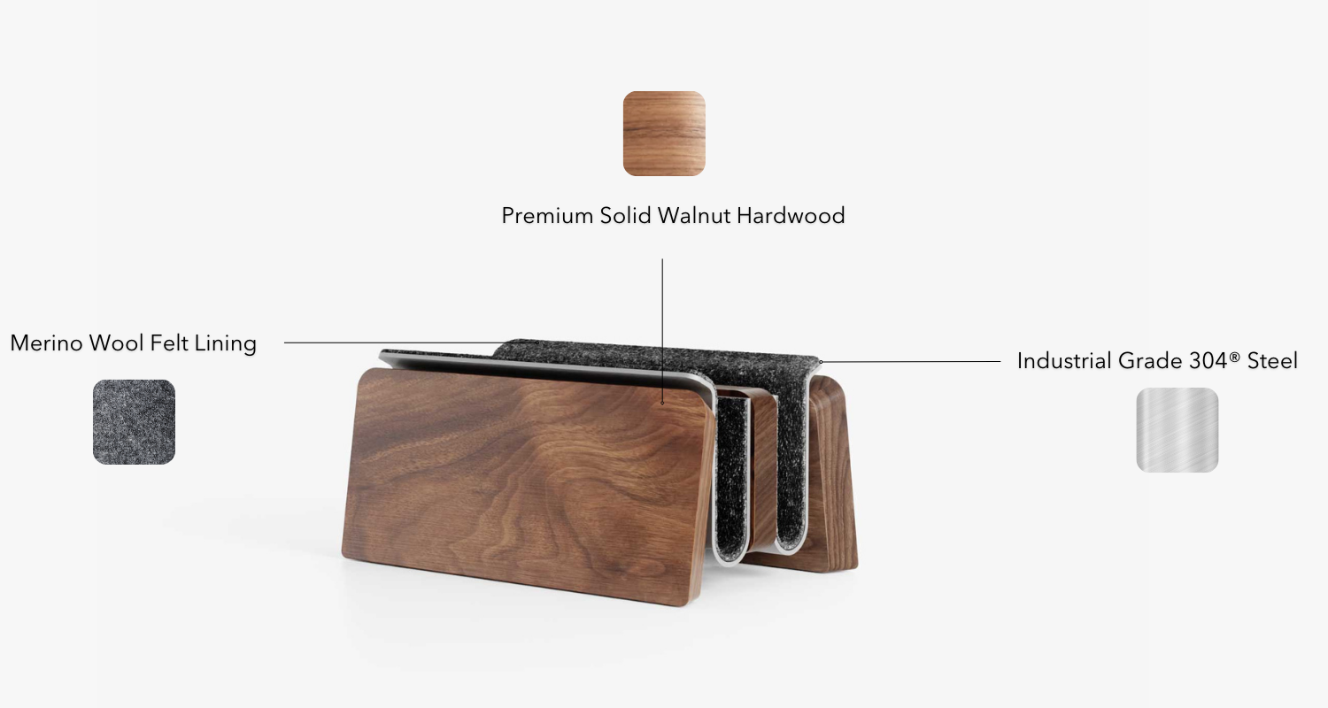 You've probably noticed that we have a carefully curated selection of raw materials. We believe these are the best materials out there for everyday use. Walnut and oak have a naturally beautiful grain and both of them have proven to be strong and durable hardwoods, ensuring that our pieces will last a long time.
